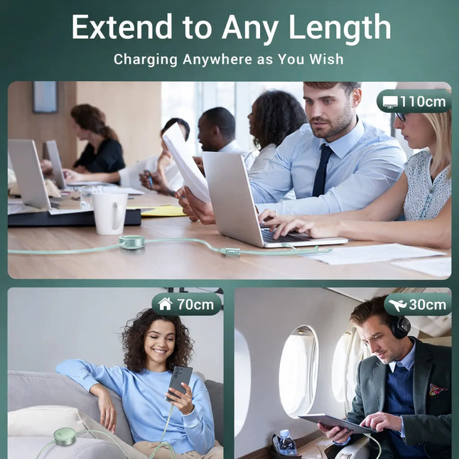 Absolutely. Its compact, lightweight design makes it ideal for desks, bedside charging, work setups, and travel use—one cable covers all your daily charging needs.