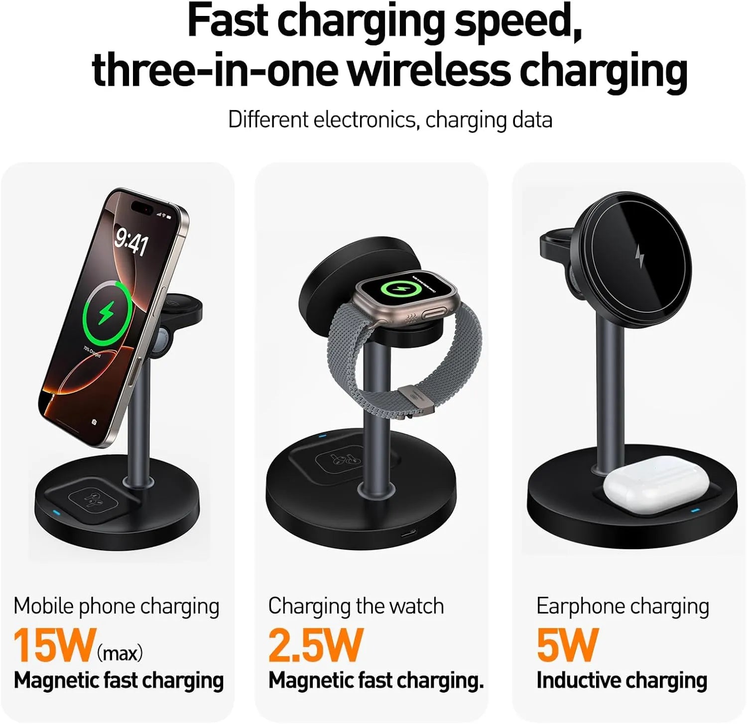 Yes. The 3-in-1 Fast Wireless Charging Station is engineered to power your smartphone, smartwatch, and earbuds simultaneously with stable, efficient wireless output — so all your devices charge together without slowing down.