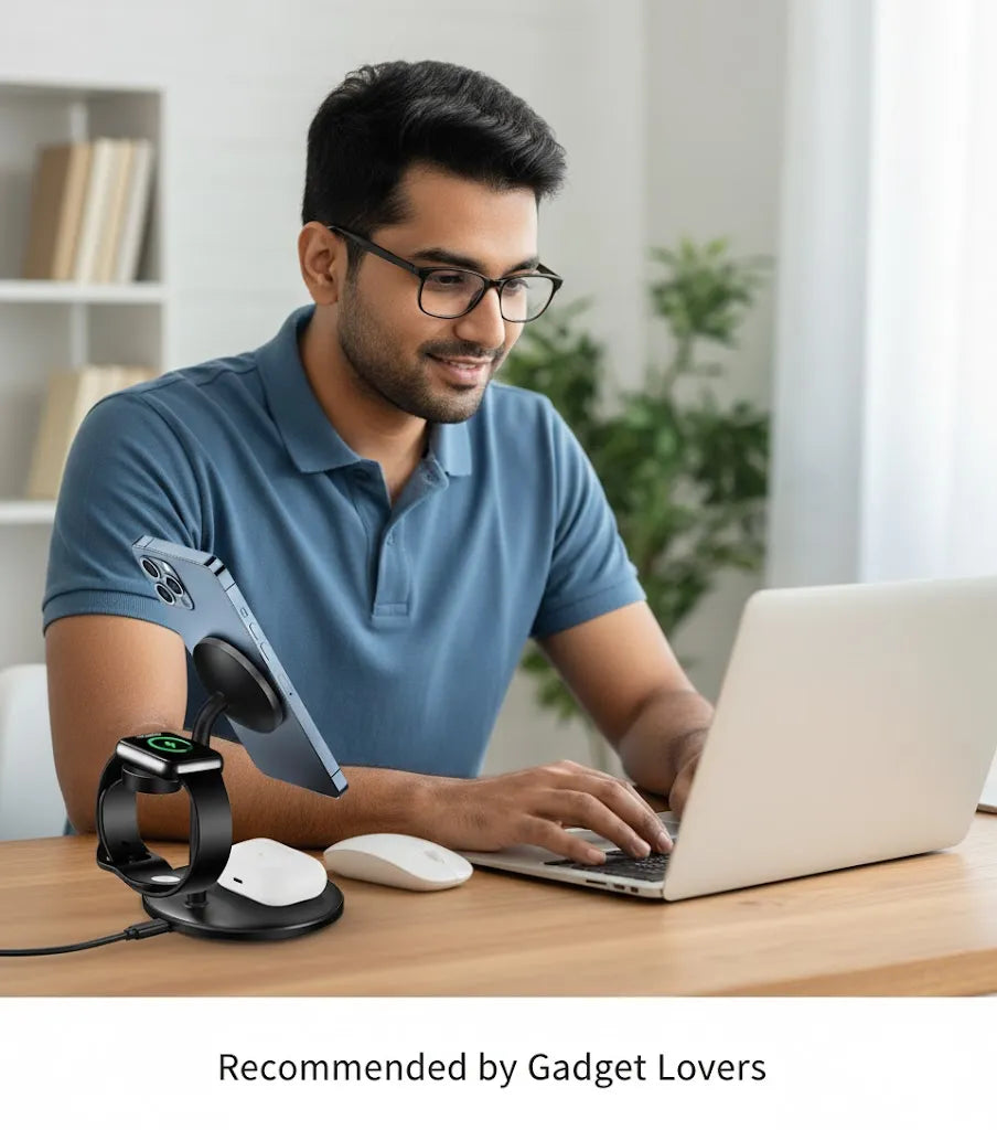 It supports Qi-enabled smartphones, compatible smartwatches, and wireless-charging earbuds — making it suitable for most modern devices.