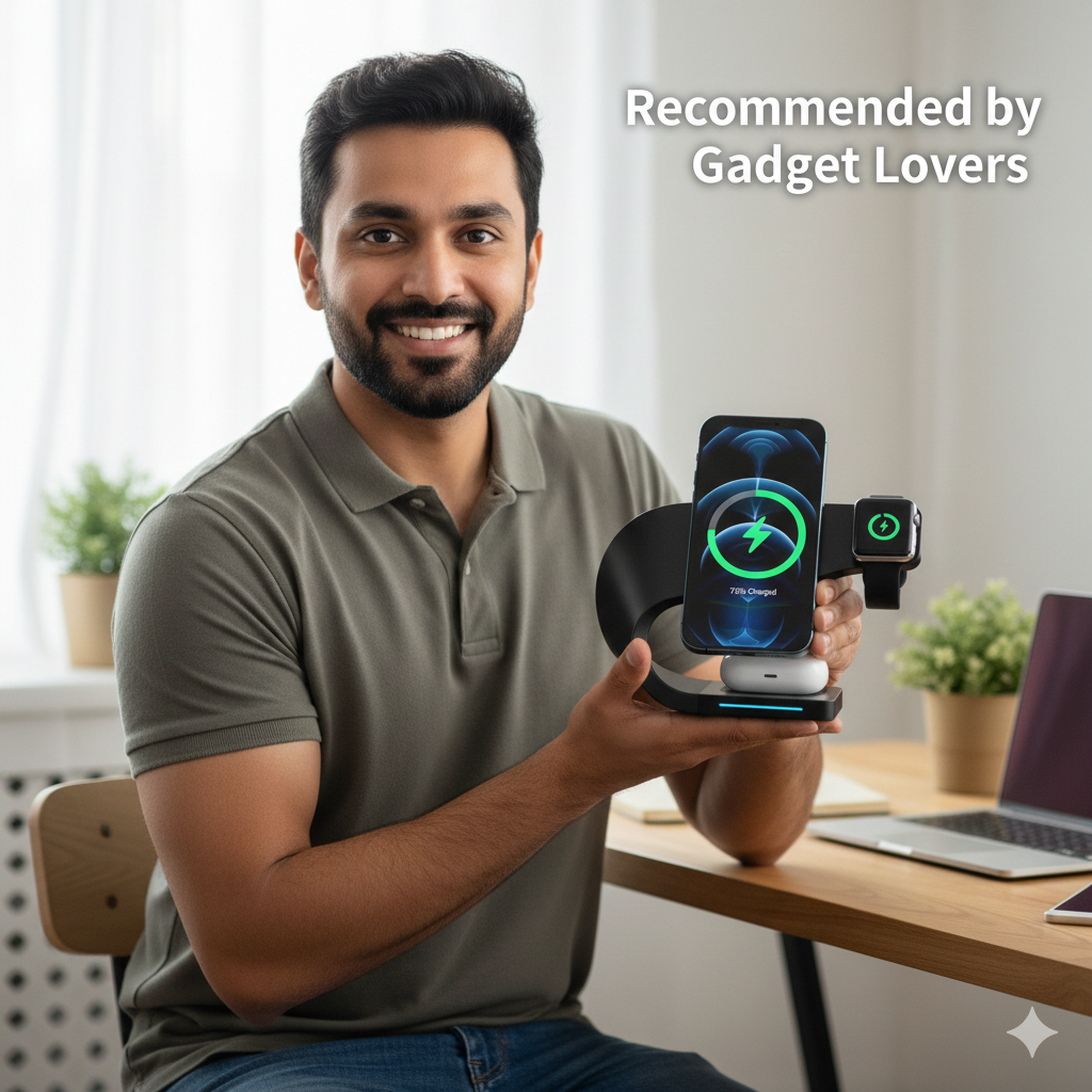 Yes. The 4-in-1 Fast Wireless Charging Station is designed to charge your smartphone, smartwatch, and earbuds simultaneously with stable, high-speed wireless output—saving time and eliminating cable clutter.