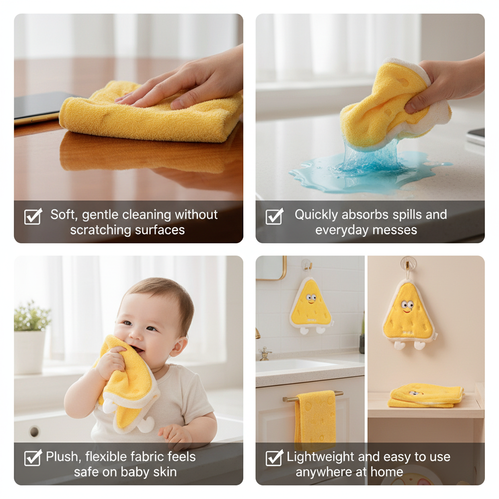 This plush microfiber cloth is designed for everyday cleaning needs across the kitchen, baby care, and home. It’s ideal for wiping spills, cleaning surfaces, drying hands, cleaning baby drool, food messes, and light household cleaning.