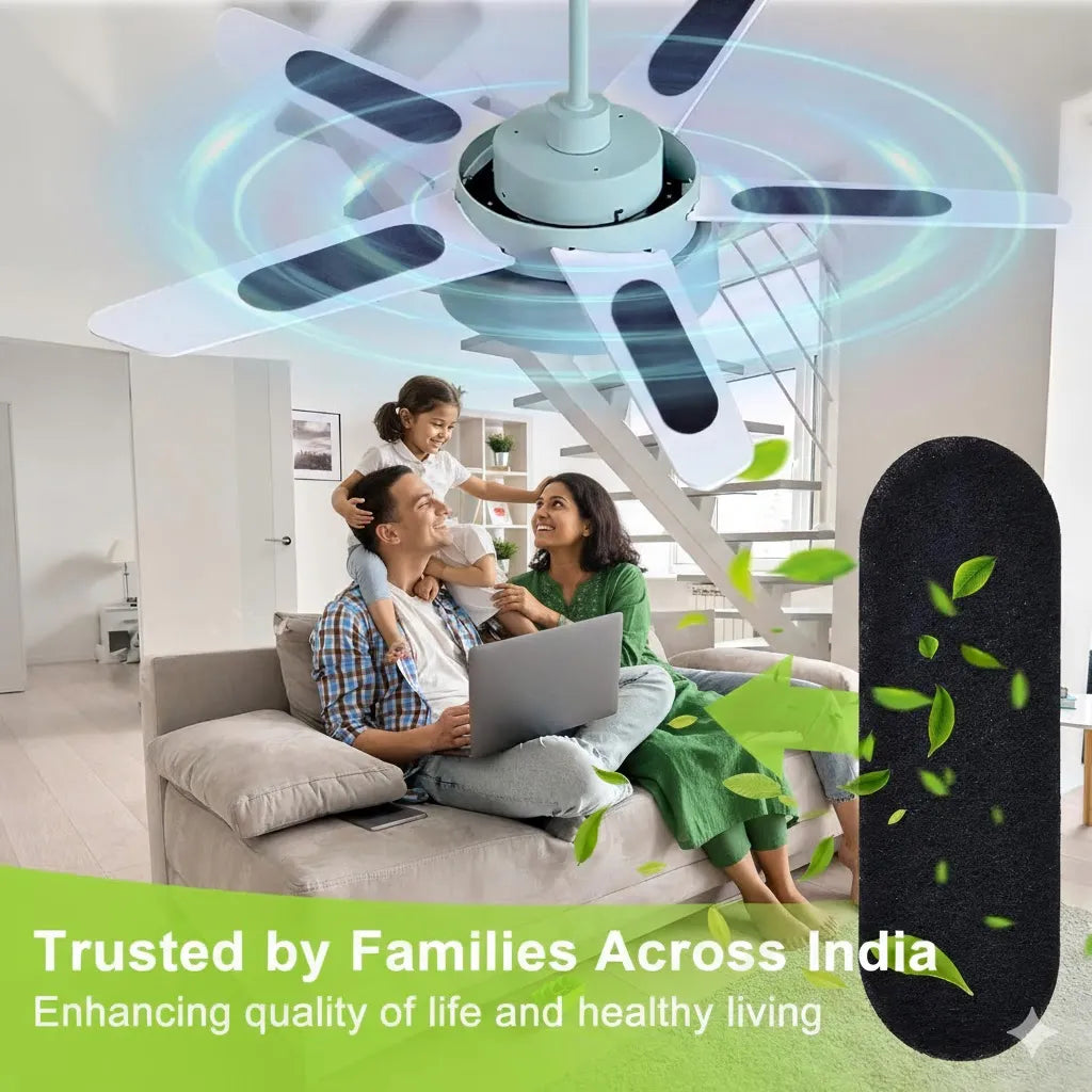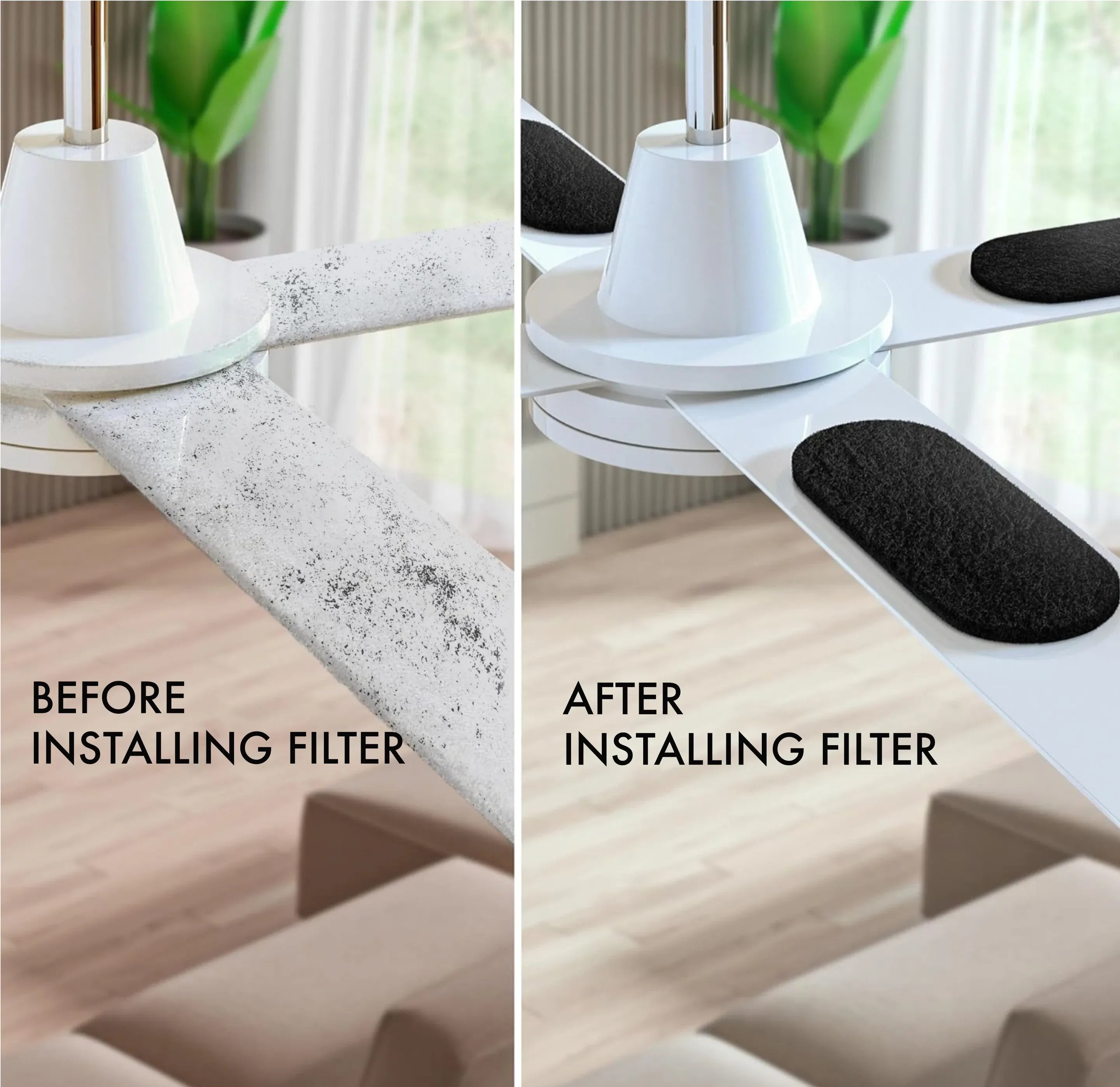Yes. The multi-layer filtration with activated coconut carbon helps trap airborne dust and fine particles as the fan runs — reducing the amount of dust that keeps recirculating indoors.