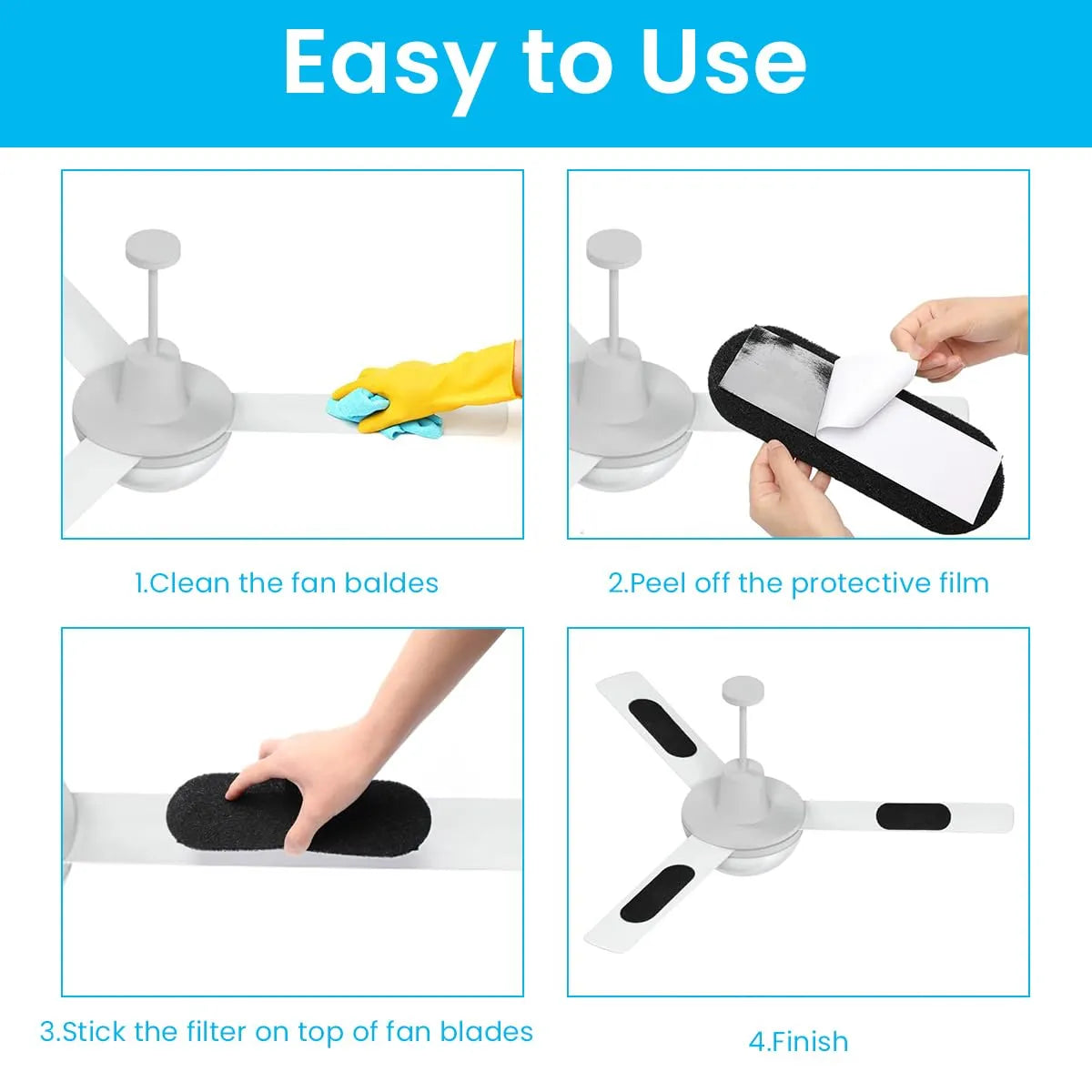 Simply attach the filter pads securely onto clean, dry fan blades as instructed. Once installed, they begin working automatically whenever the fan is turned on.