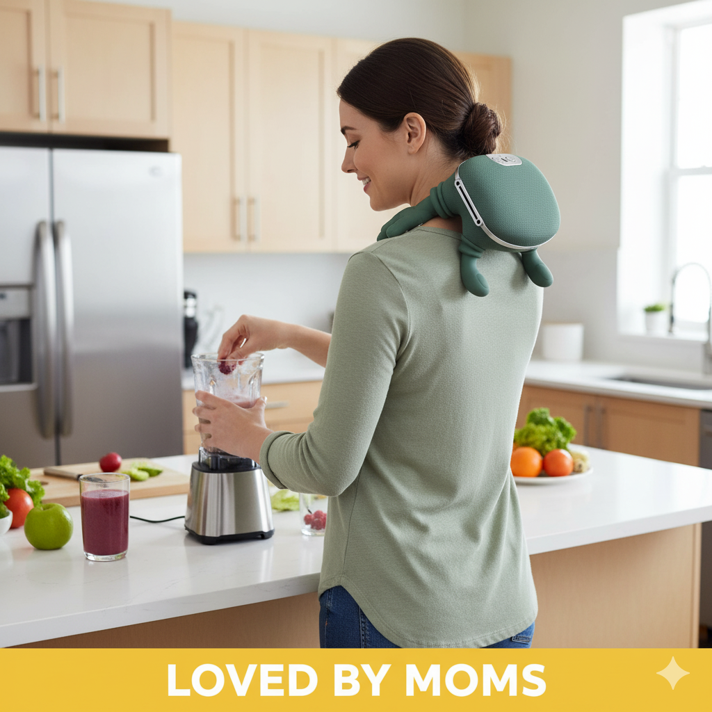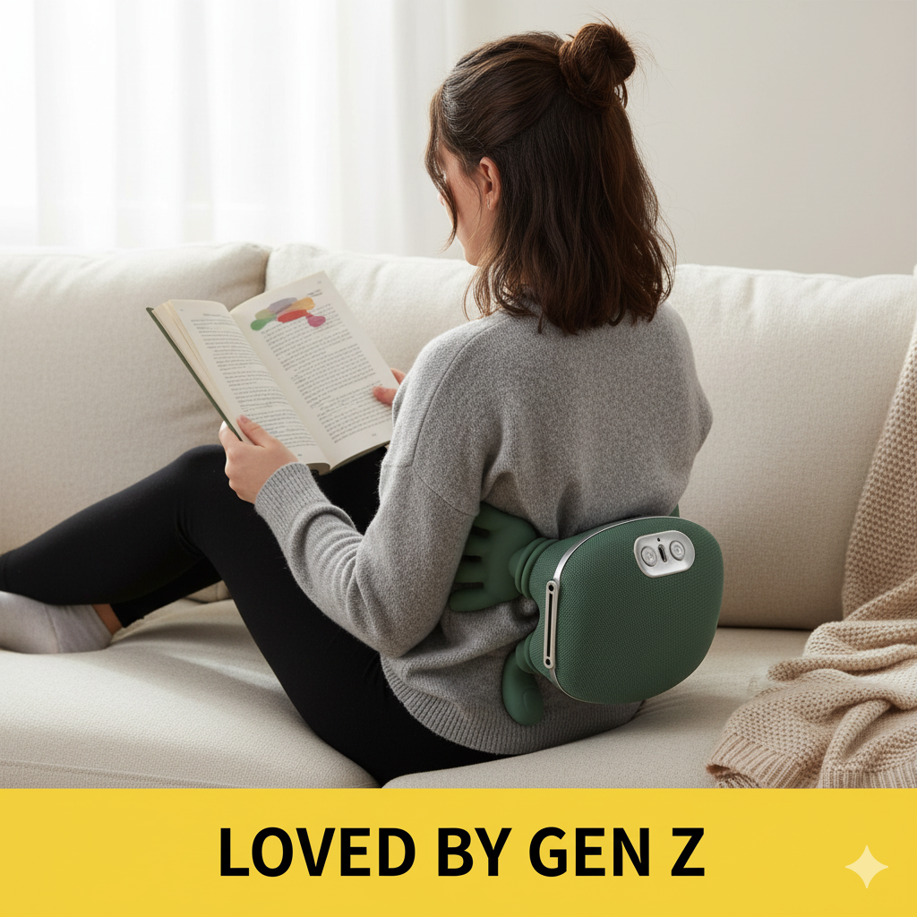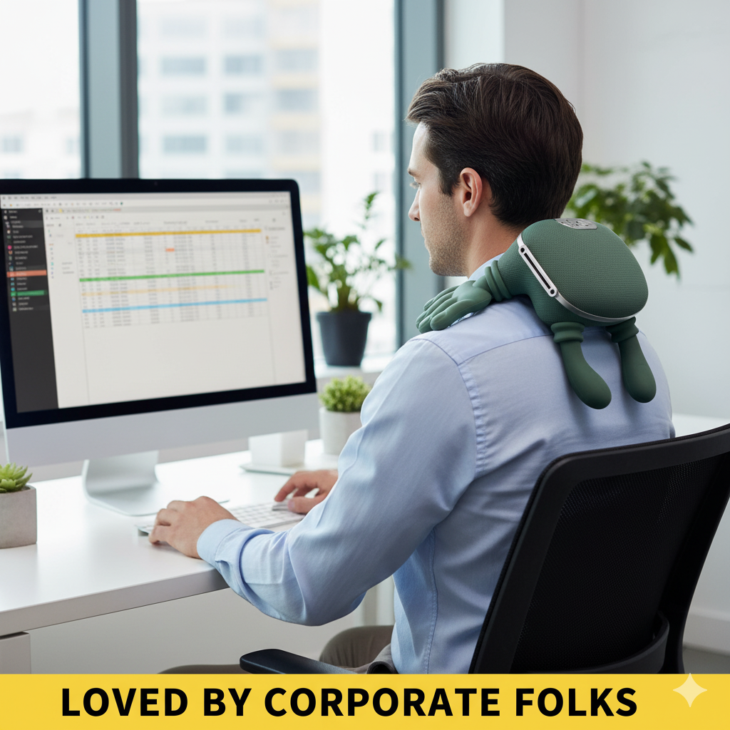 The device uses deep-kneading massage nodes combined with gentle heat therapy to mimic the hands of a professional therapist. It targets neck, shoulders, and back muscles to relieve tension and improve circulation