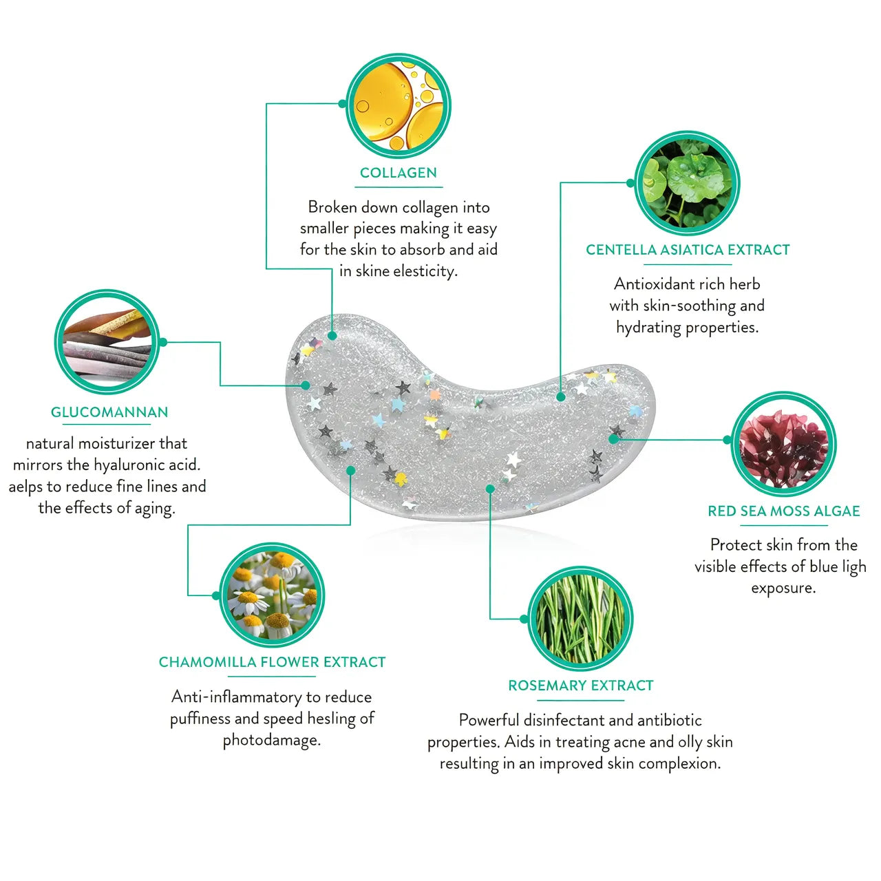 Ultra-slim under-eye patches infused with collagen that hydrate, soothe, and refresh while providing a cooling effect.