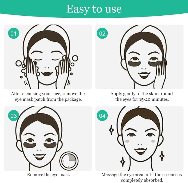 Clean and dry under-eyes, apply the patches for 15–30 minutes, then remove and massage in any remaining serum.
