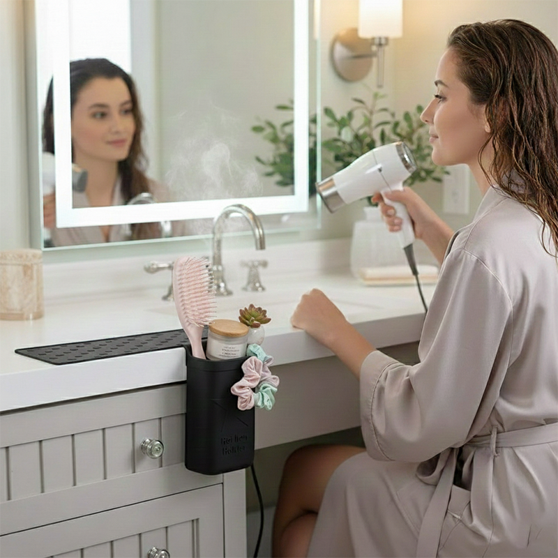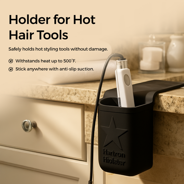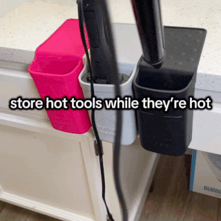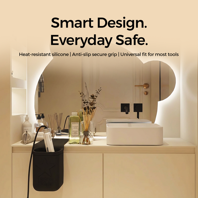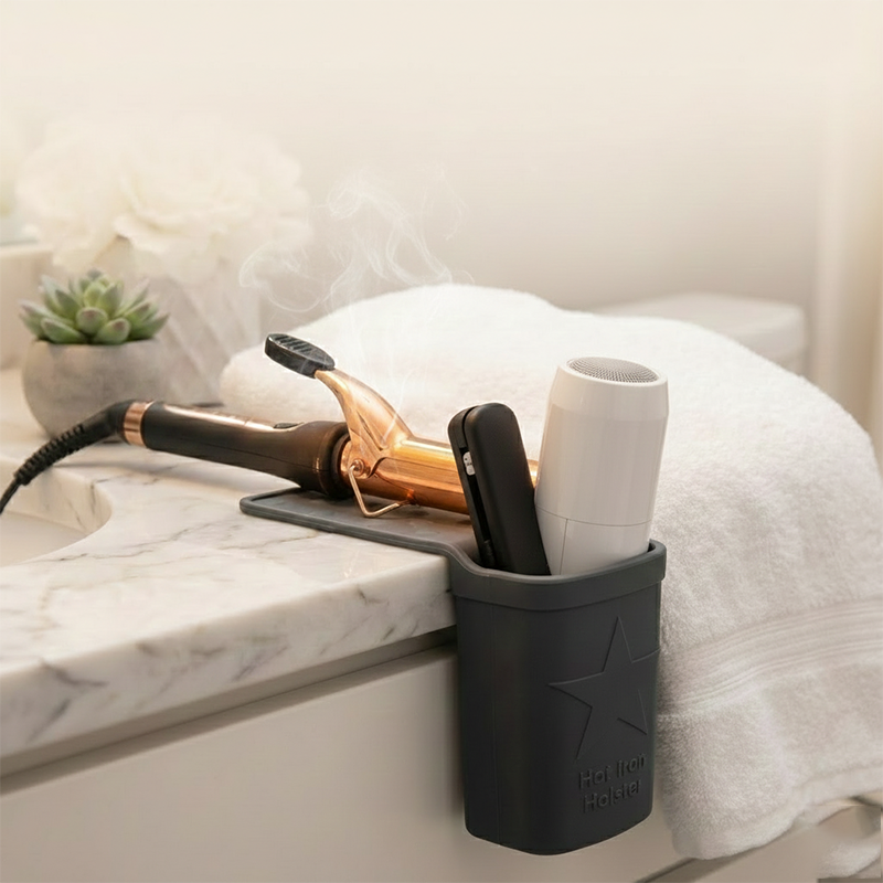 Yes — heat-resistant silicone holds dryers, straighteners, and curlers safely, right after use.
