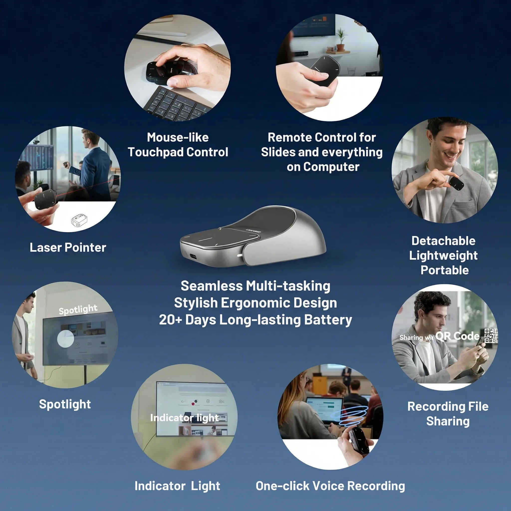 Yes. It was built for the modern "anywhere" professional. Its ultra-lightweight (70g) and detachable pocket-sized design ensures you have a full-scale presentation suite and AI recorder wherever you go.