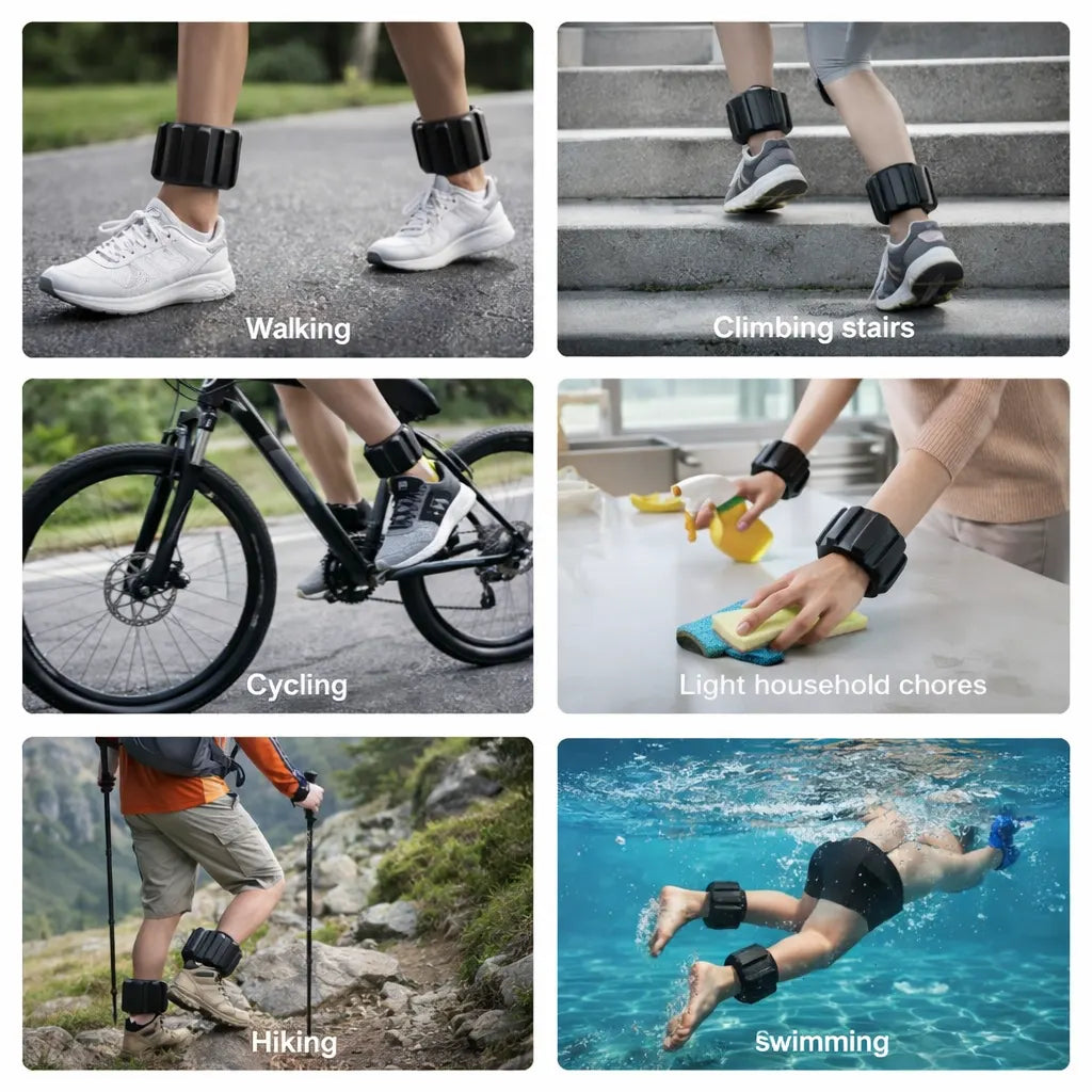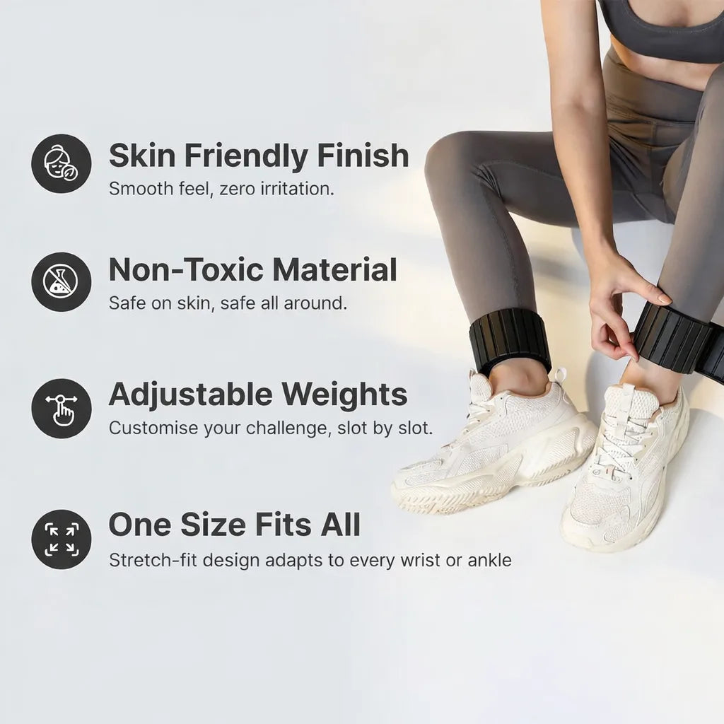 The set includes 2 loops of 0.5 kg each (total 1.0 kg). This light, balanced resistance is designed for daily wear, walking, yoga, and low-impact workouts without straining joints.