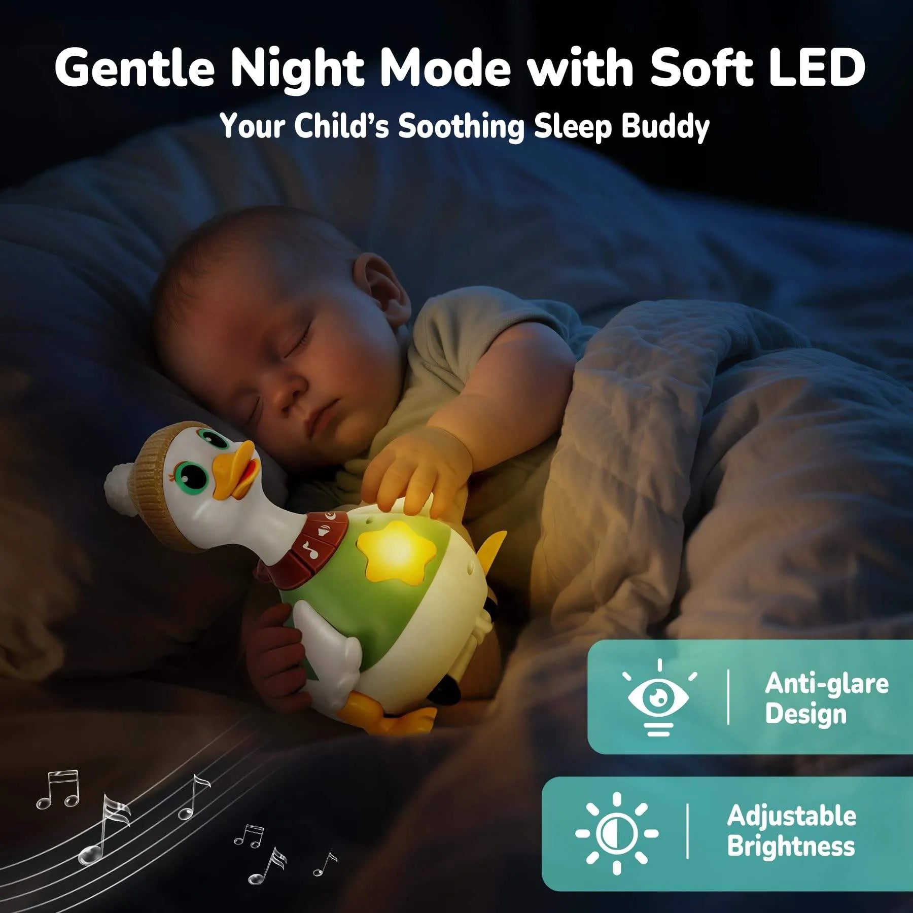 Not at all. It comes with a gentle, baby-friendly melody system and easy button control, so the sound remains pleasant and engaging without being overwhelming.