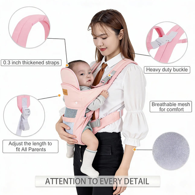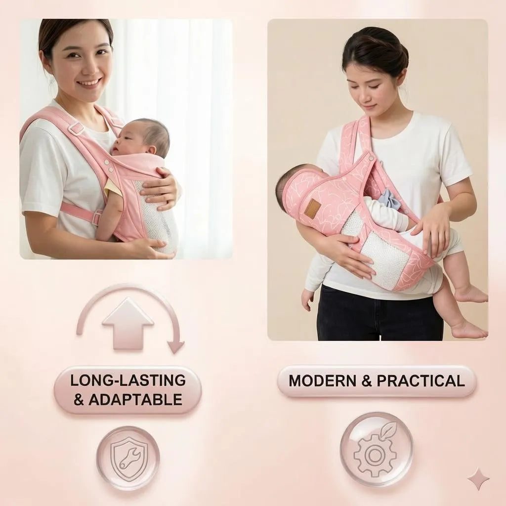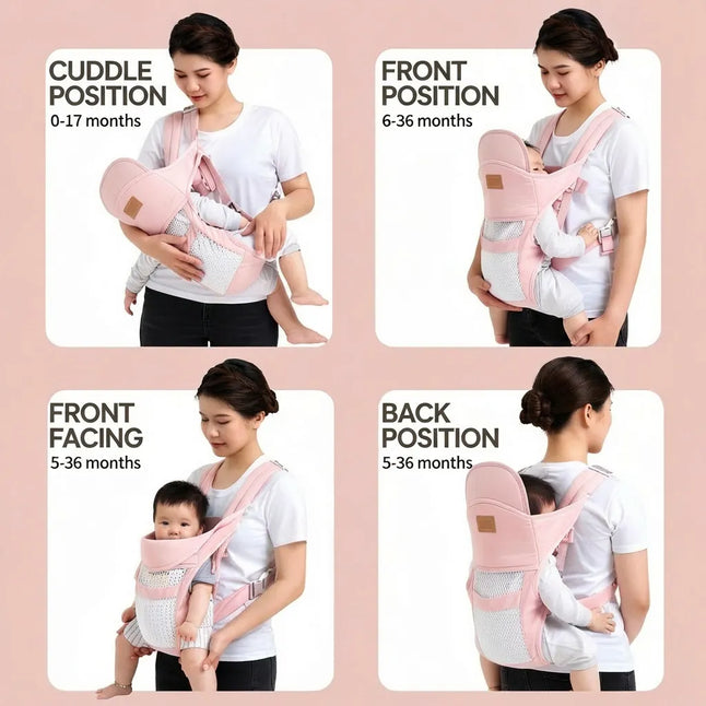 It supports front, hip, and back carry positions for different stages and comfort needs.