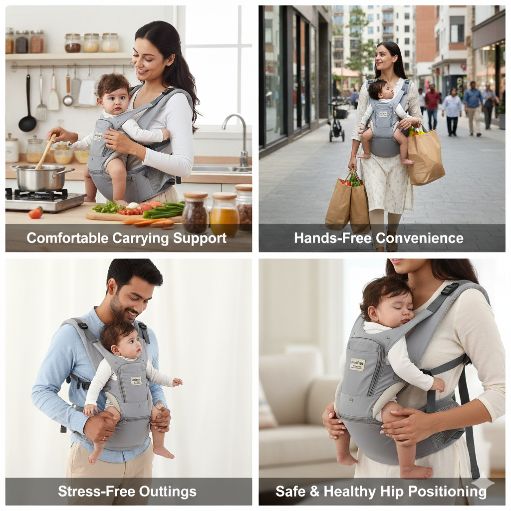 The ergonomic hip seat, soft breathable fabric, and multiple carrying options keep your little one close and comfortable, while giving moms the freedom to move with ease and confidence.