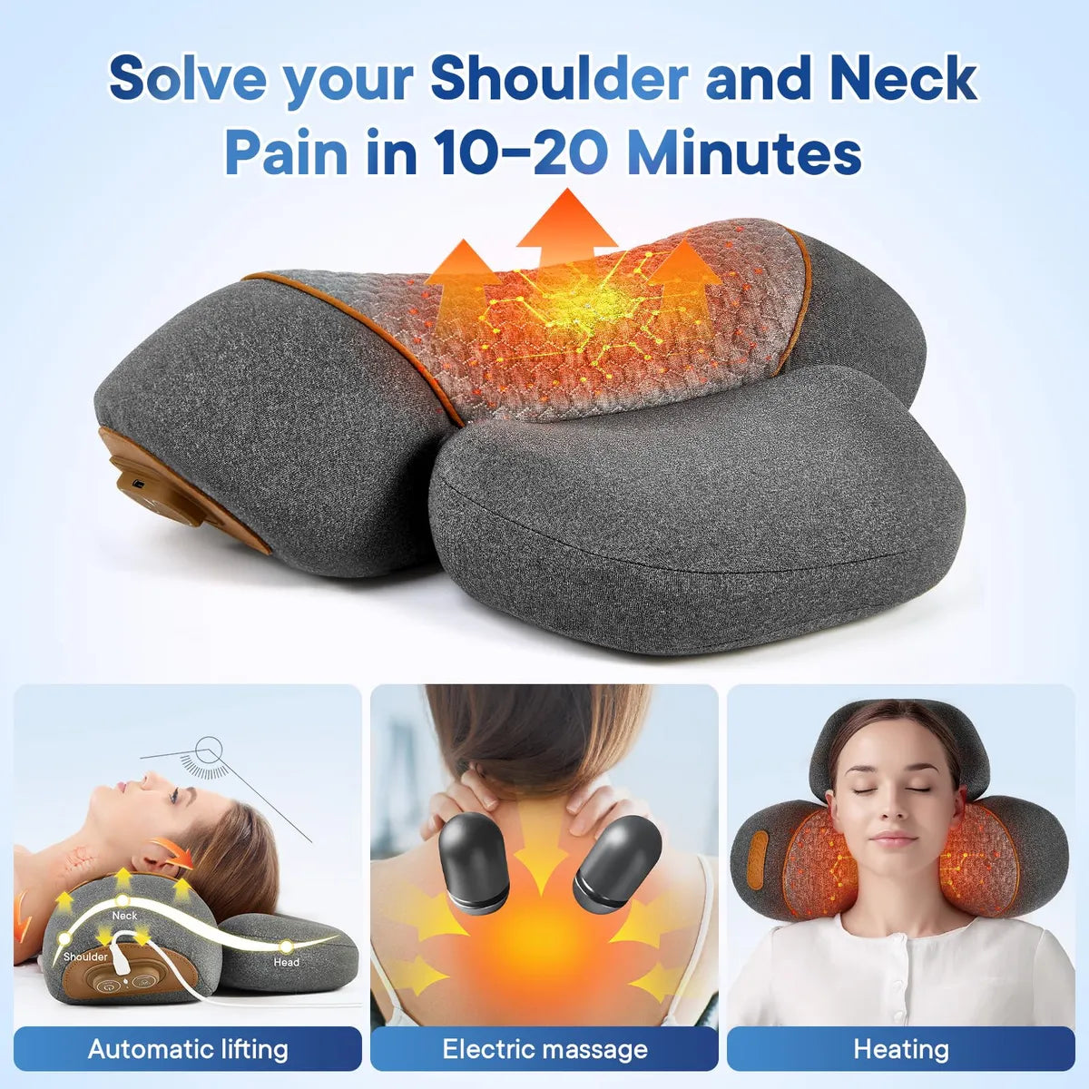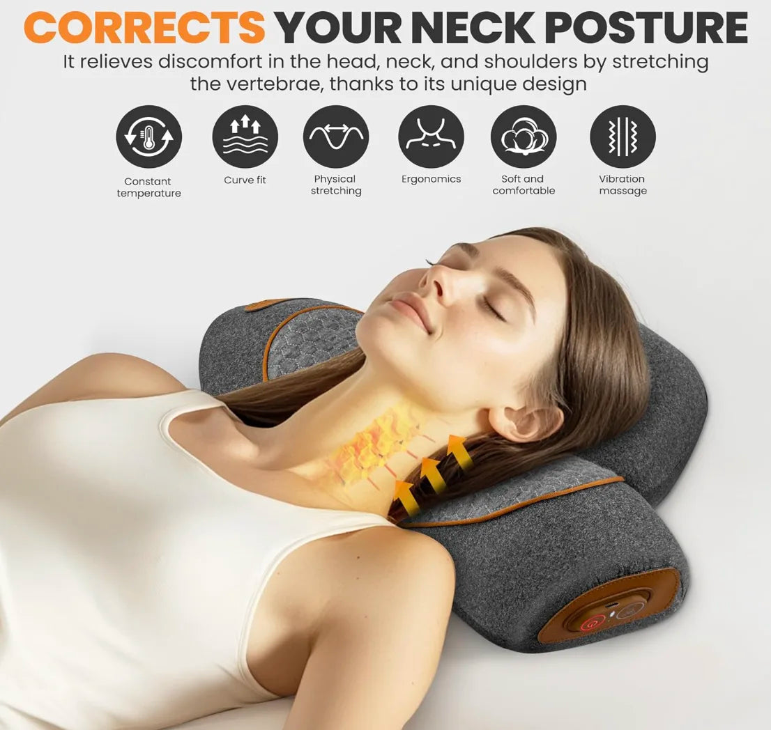 Yes! The gentle heat + vibration massage loosens tight neck muscles and reduces stiffness within minutes, while the curve design supports better posture.