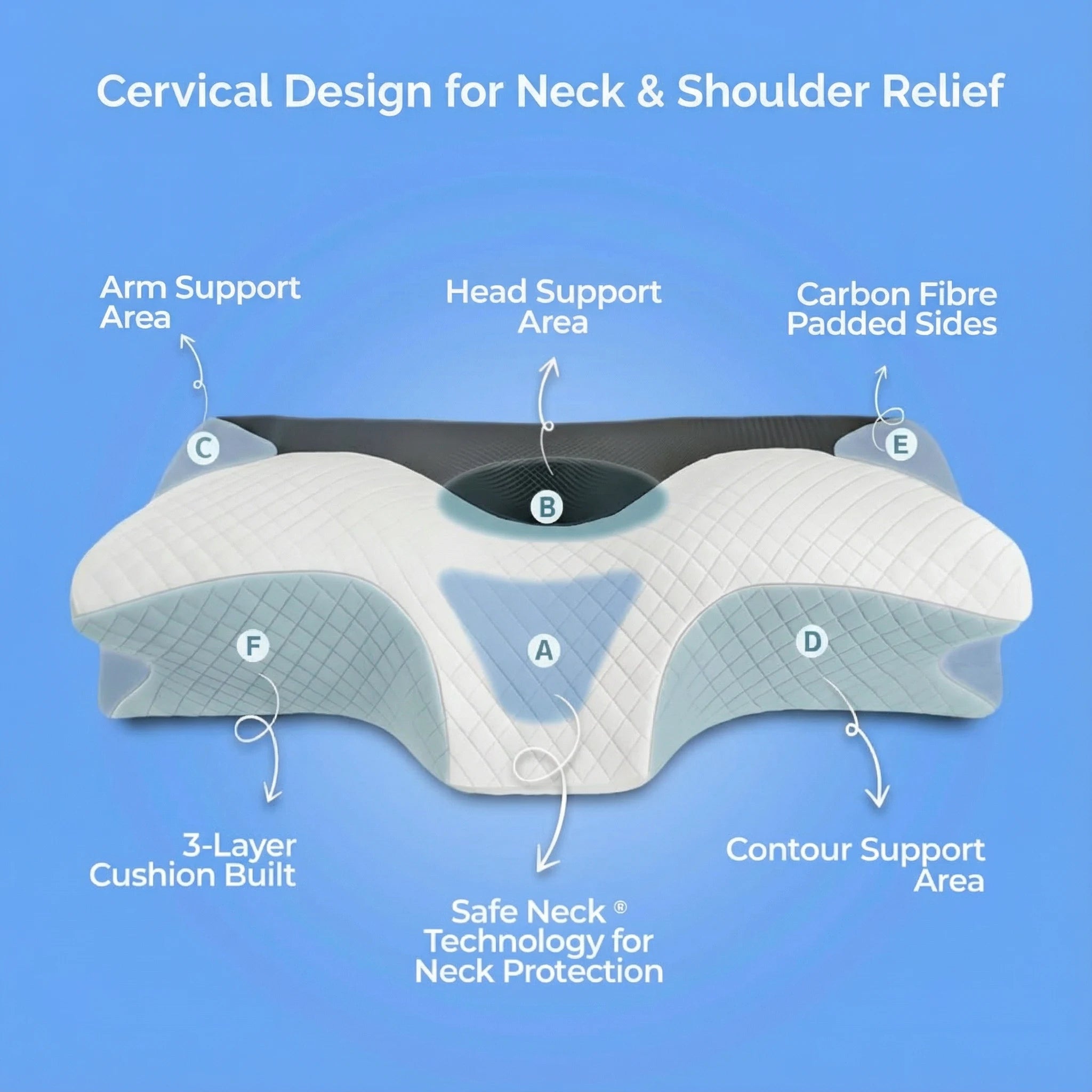 OrthoPillow cradles your neck’s natural curve and keeps your spine properly aligned while you sleep. This reduces pressure on nerves and muscles, helping ease neck pain, shoulder tension, and headaches.