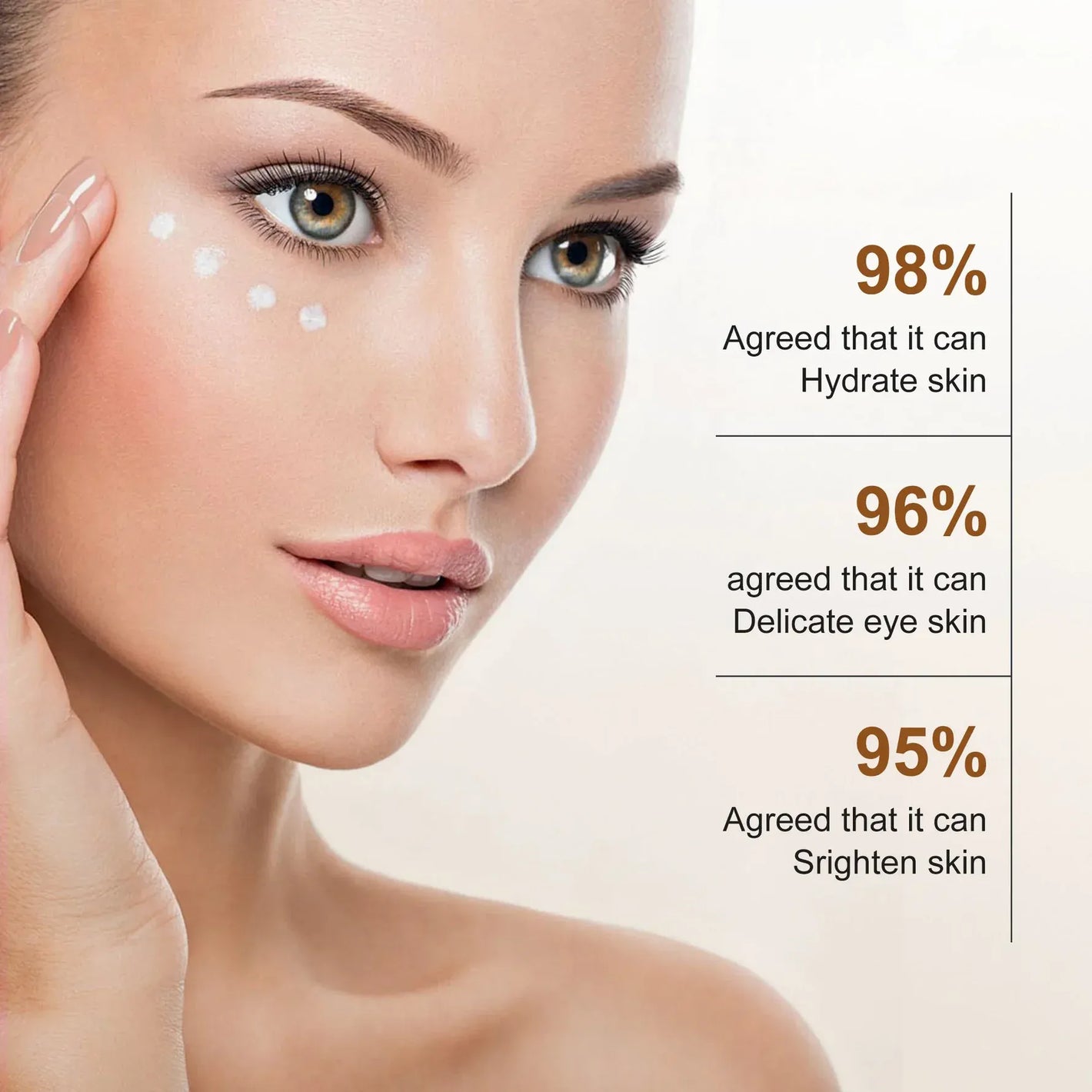Most users notice smoother, brighter-looking eyes within 2–4 weeks, with better firmness over continued use.
