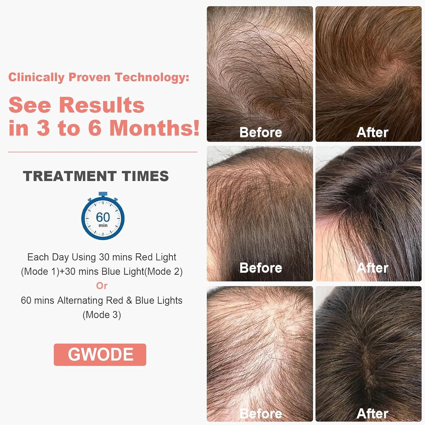 ✅ Yes — Red Light helps improve blood flow to the scalp and strengthens hair follicles, while Blue Light supports a cleaner, healthier scalp environment. Together, they create ideal conditions for reducing hair fall and promoting new growth over time.