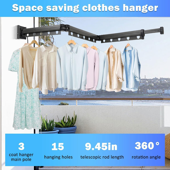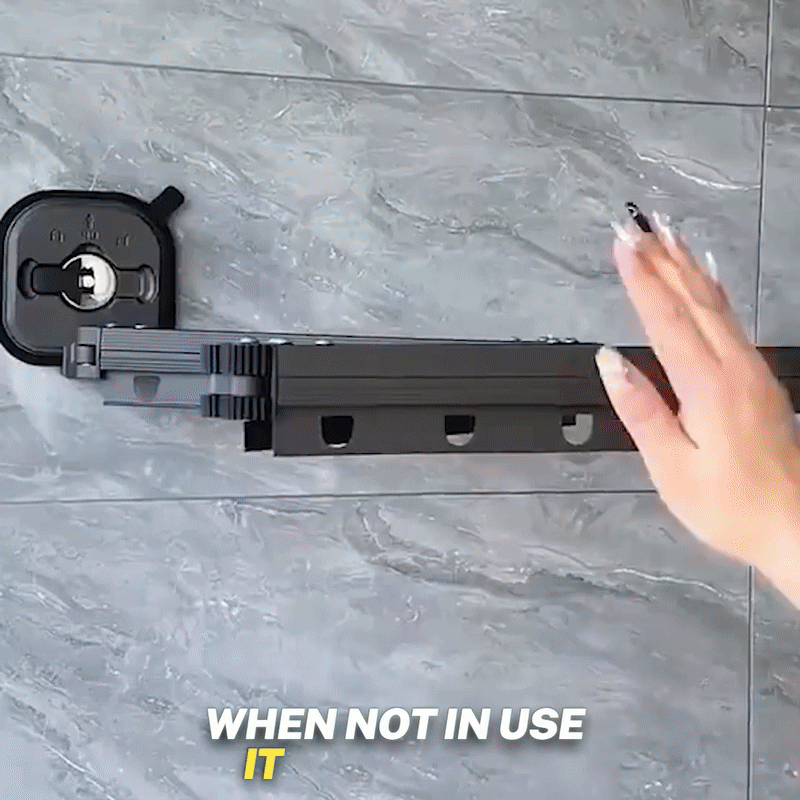 The rack features a foldable, wall-mounted design with 180° rotating arms. Simply unfold it when needed, hang your clothes, and fold it back flat after drying — saving space and keeping your area tidy.